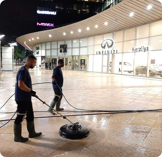 ניקוי עומק של חזיתות מבנים, משטחים ורחבות חיצוניות
